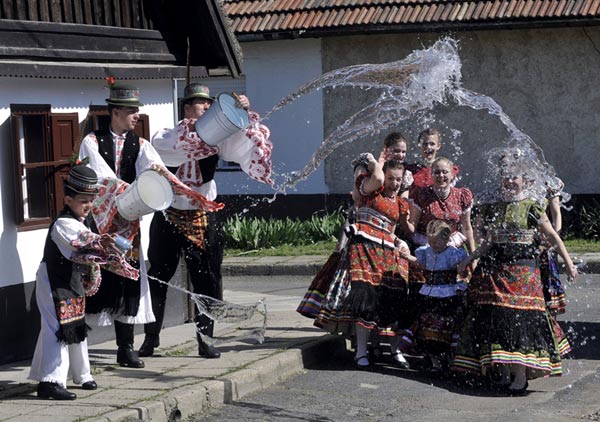 Trên đường phố Hungary, những người đàn ông, cũng trong trang phục cổ truyền bắt mắt, tay lăm lăm những xô nước, rượu để dội thẳng tay vào những cô gái đi qua đường. Một số nhóm thậm chí còn giữ tay các cô gái để người khác dội nước.