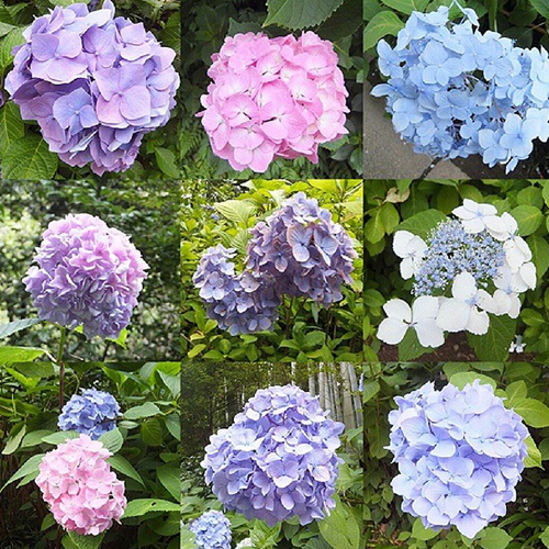 Hoa Ajisai đa dạng màu sắc và hình dáng.